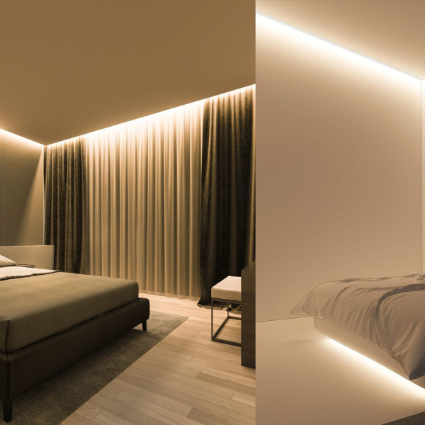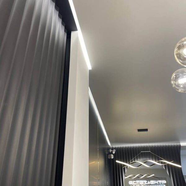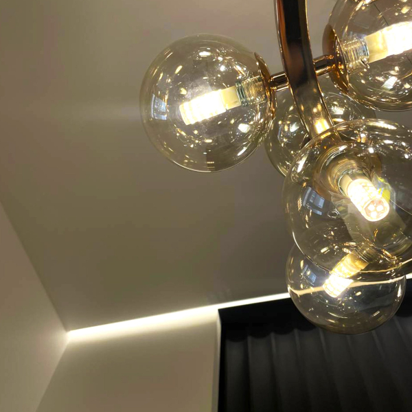 Они не просто украшают интерьер, но выполняют функцию дополнительного освещения. Световая линия по краю потолка подчеркивает геометрию комнаты и придает простору объему. Парячие конструкции подходят как для жилых комнат, так и для коммерческих объектов – от кафе до шоу-румов.