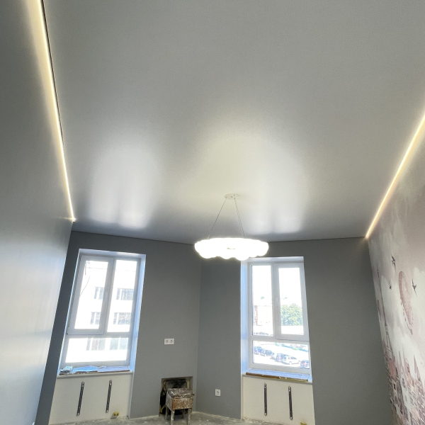 Парячие натяжные потолки – это инновационное решение, создающее впечатление, что потолок буквально завис в воздухе. Эффект достигается благодаря скрытому монтажному профилю и встроенной LED подсветке, которая формирует мягкое световое сияние по периметру. Такой дизайн выглядит современно, легко и эффектно в любом помещении.