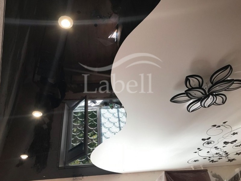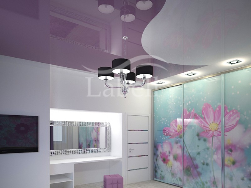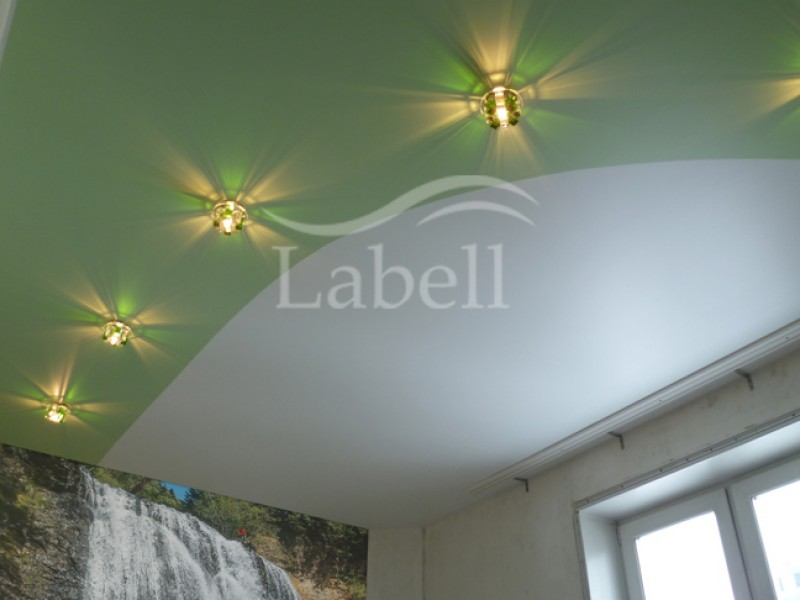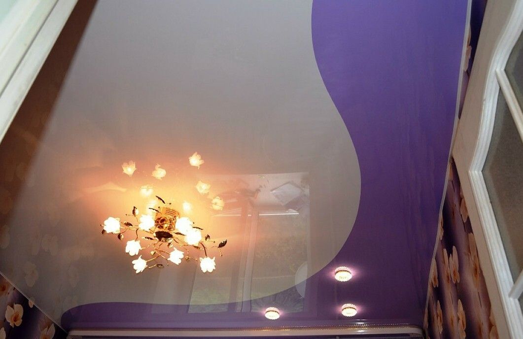 Спайка натяжної стелі – це комбінування різних кольорів або фактур на одному полотні.