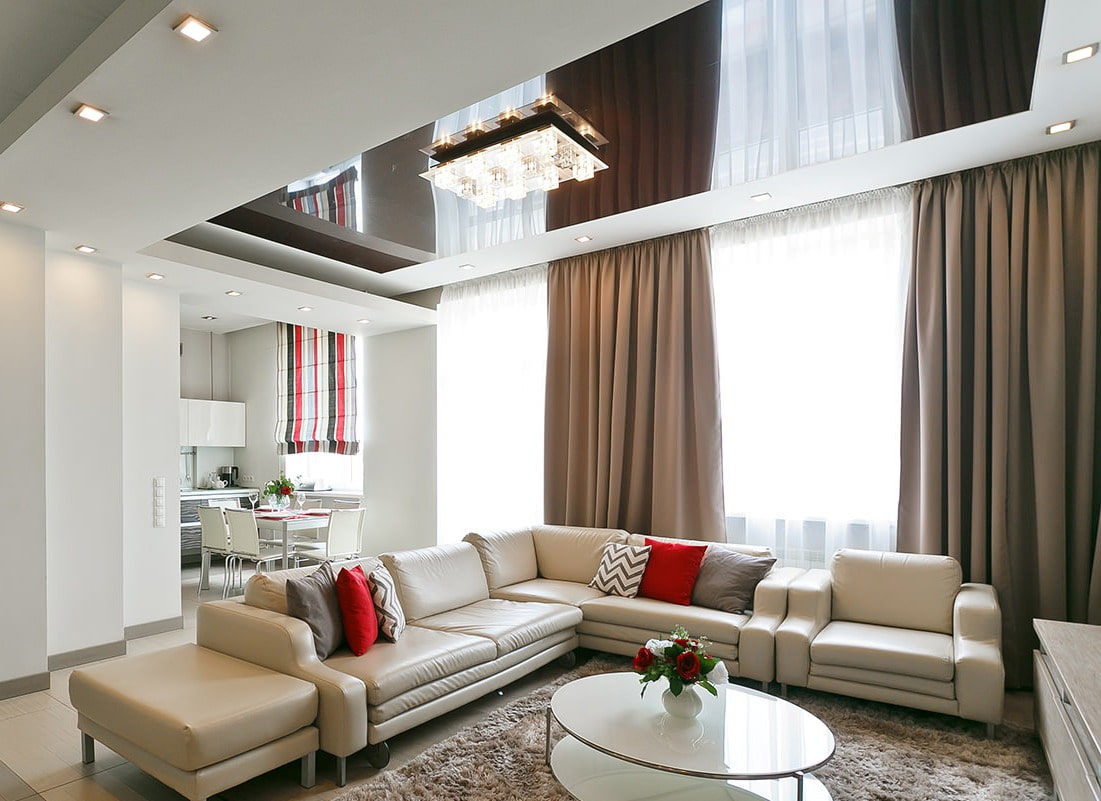 Глянсові натяжні стелі – це ідеальне рішення для тих, хто хоче візуально розширити простір і додати йому елегантності. Дзеркальний ефект глянцевого полотна відбиває світло, роблячи кімнату світлішою та просторішою. Такий тип стелі особливо популярний у сучасних квартирах, офісах та комерційних приміщеннях, де важливо створити ефектний інтер’єр.